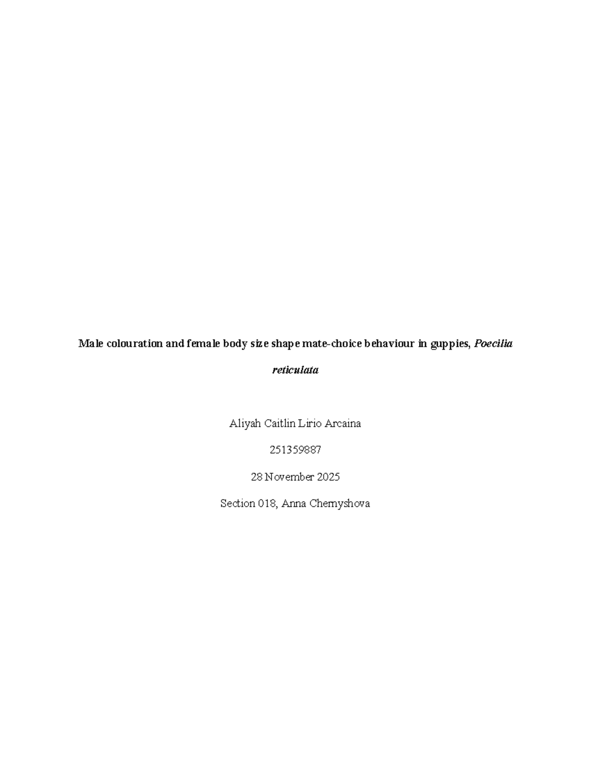 BIO3436F Lab Report 3: Guppy Mate Choice and Behaviour Analysis - Studocu