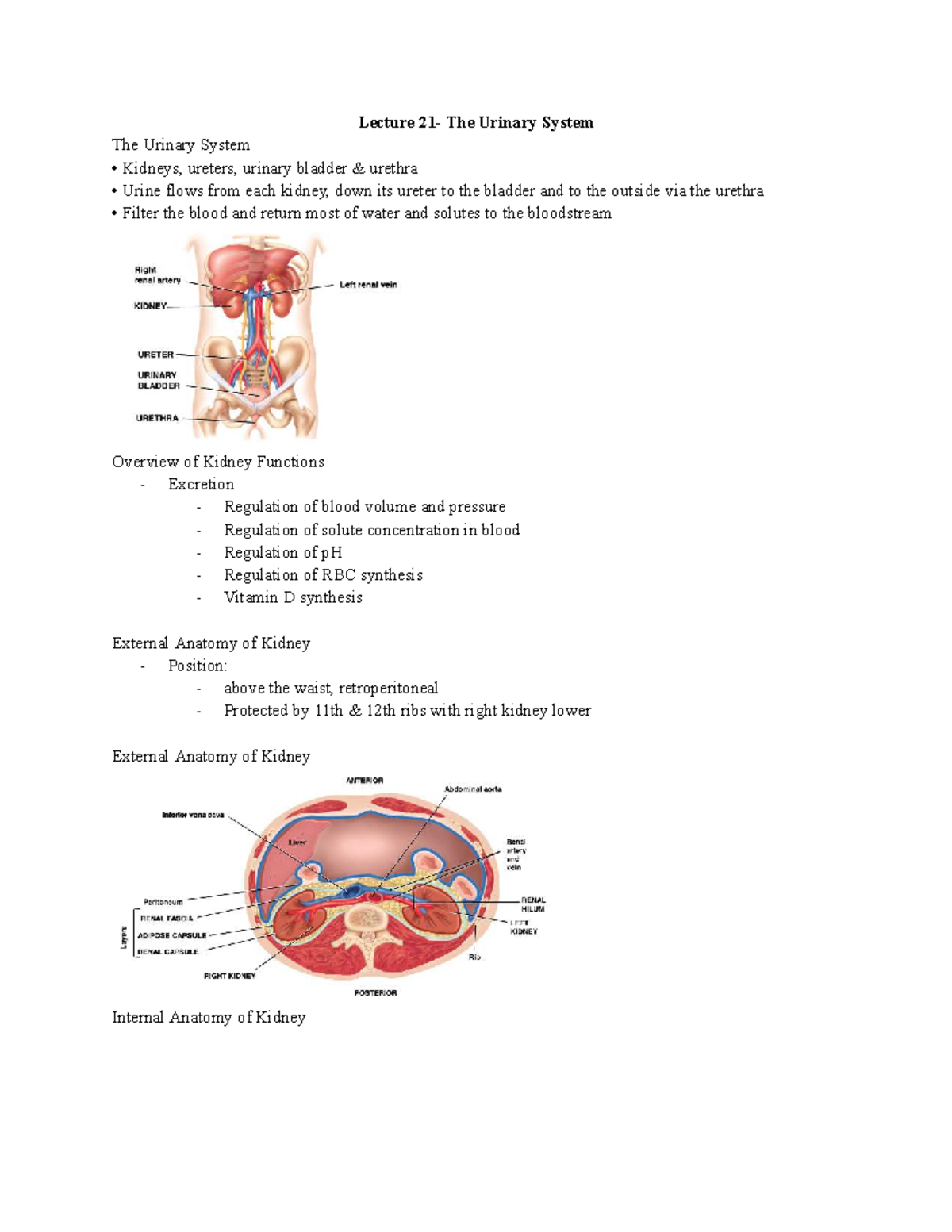 Urinary System Notes: Anatomy & Function of Kidneys (BIO 101) - Studocu
