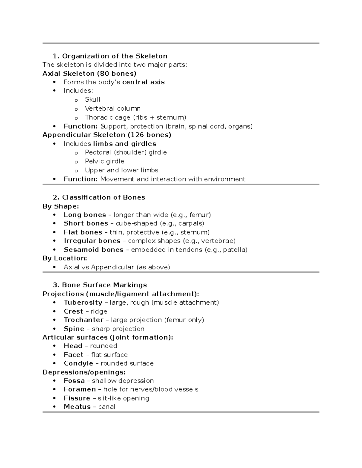 Bio235 - Comprehensive Notes on the Skeletal System - Studocu