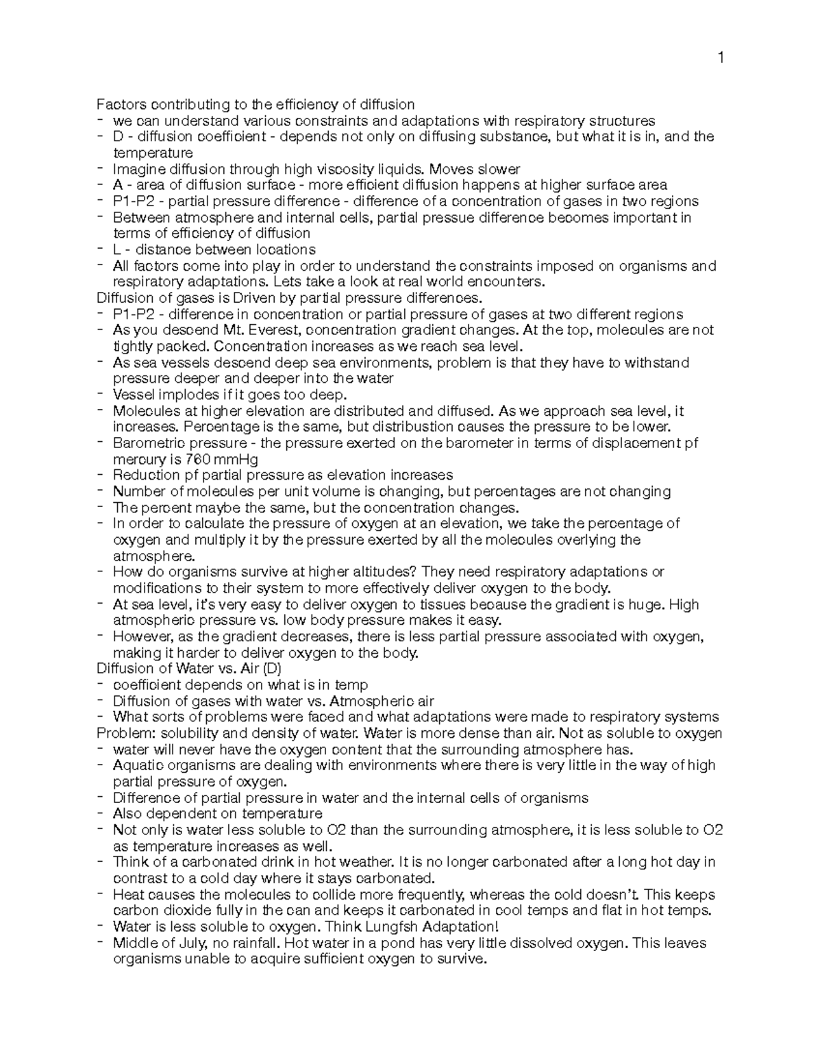 BIO Test 2 - Lecture Notes on Gas Exchange and Muscle Physiology - Studocu