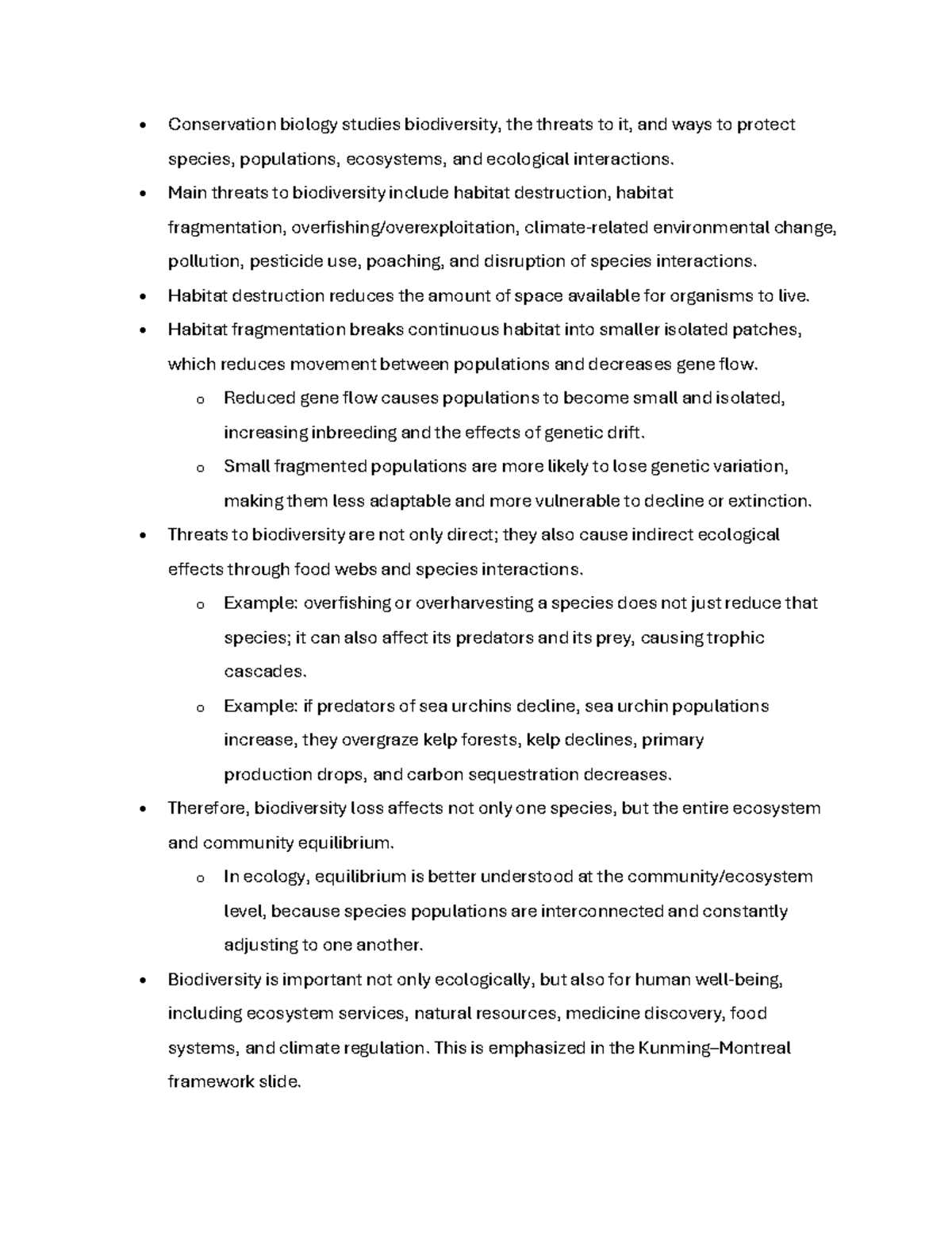 Discussion 16 Notes: Conservation Biology and Biodiversity Threats ...