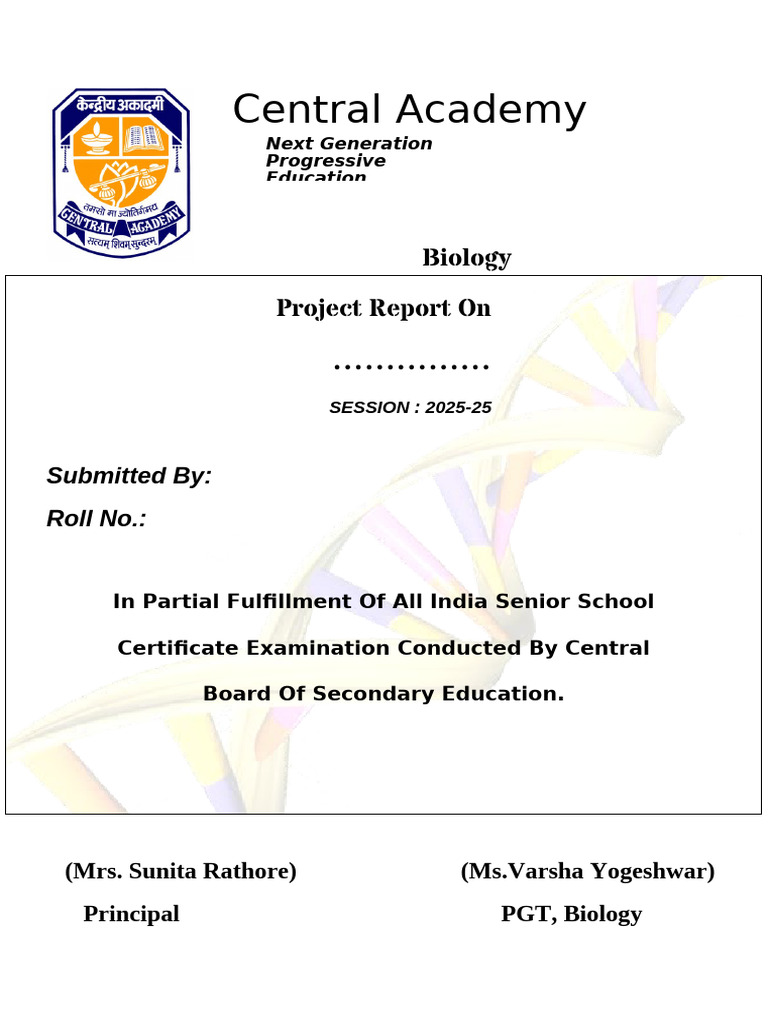 Biology Project Work Front Page Design