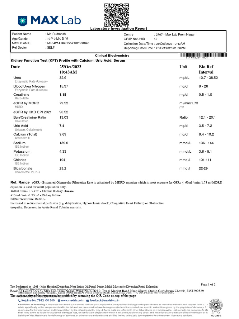 Date 25/oct/2023 10:43AM Unit Bio Ref Interval: Laboratory ...