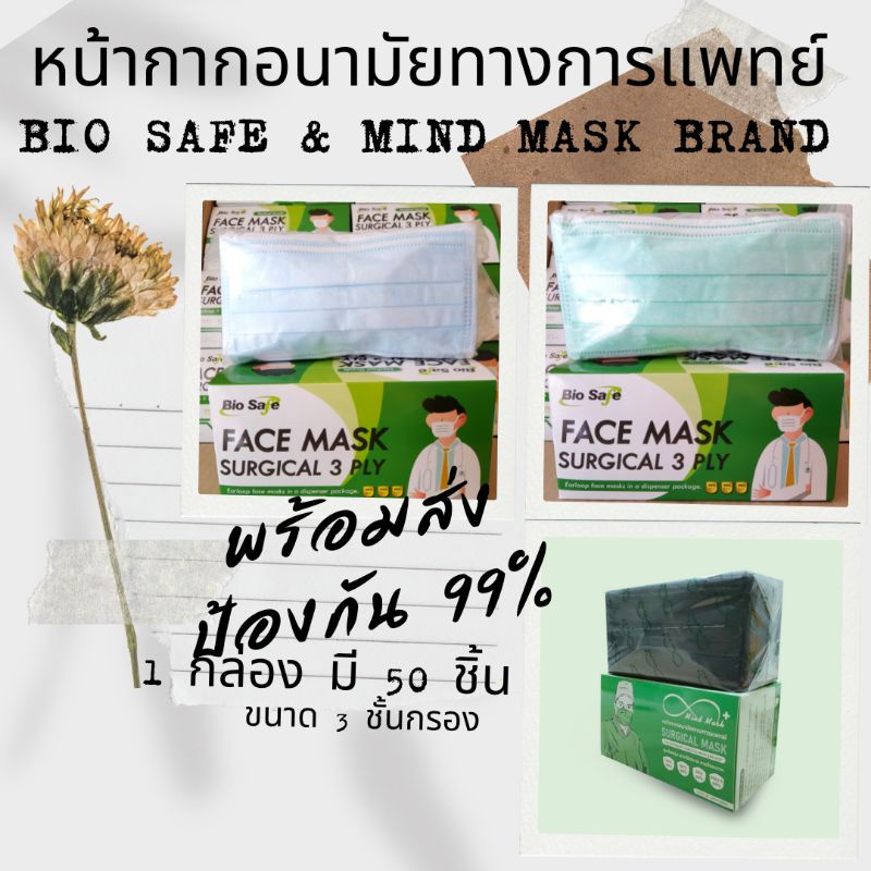 Bio safe Face Mask Surgical 3PLY หน้ากากอนามัยเกรดการแพทย์ 1 กล่อง 50 ...