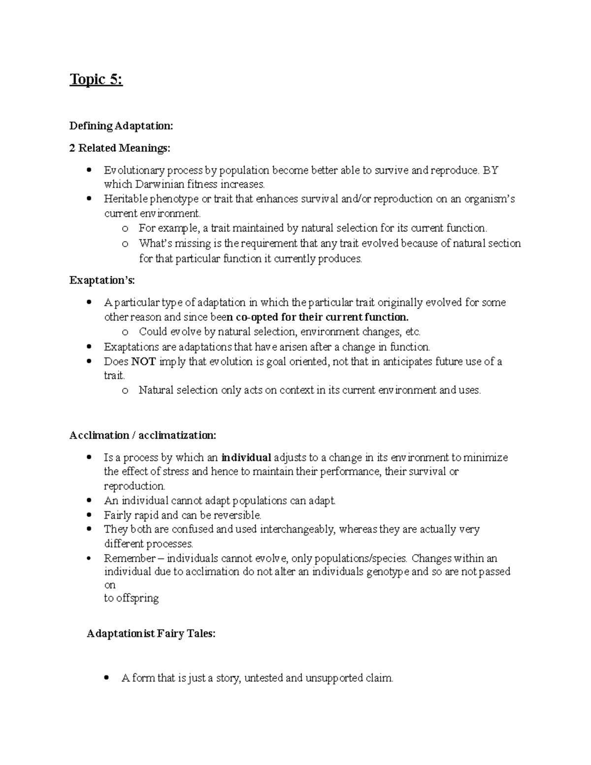 Topic 5 - bio - Topic 5: Defining Adaptation: 2 Related Meanings ...