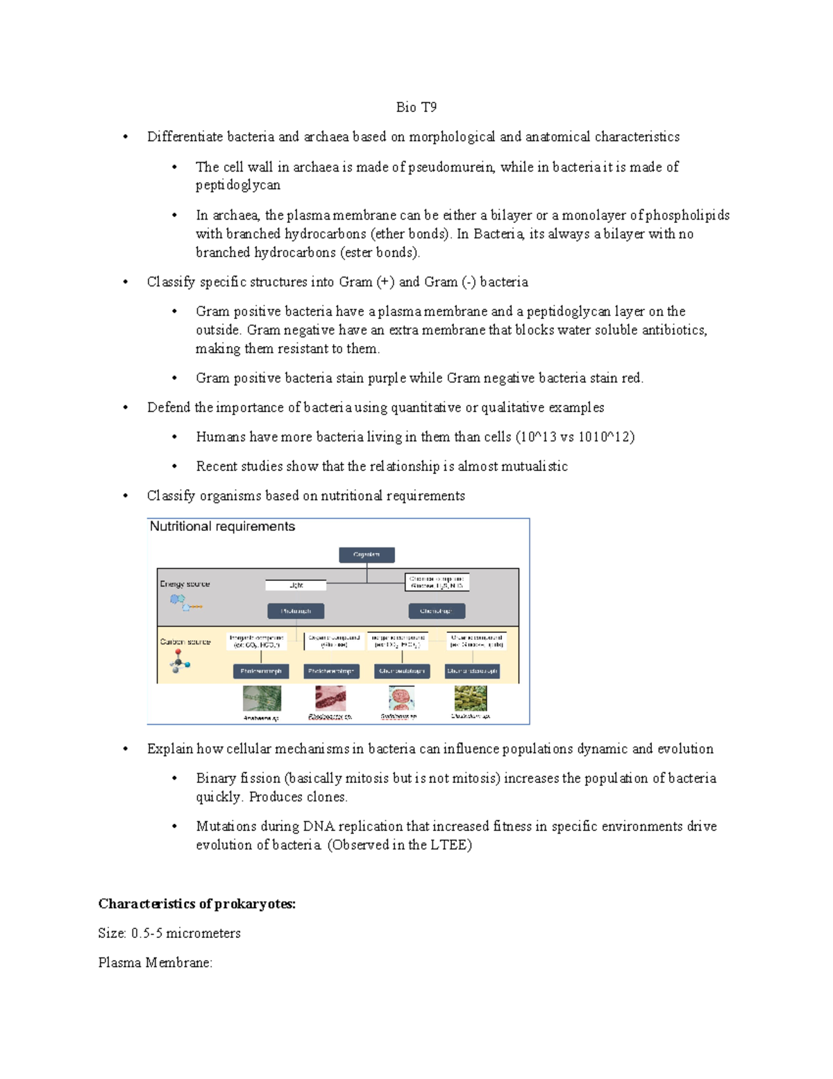 Bio Topic 9 summary - Bio T Differentiate bacteria and archaea based on ...