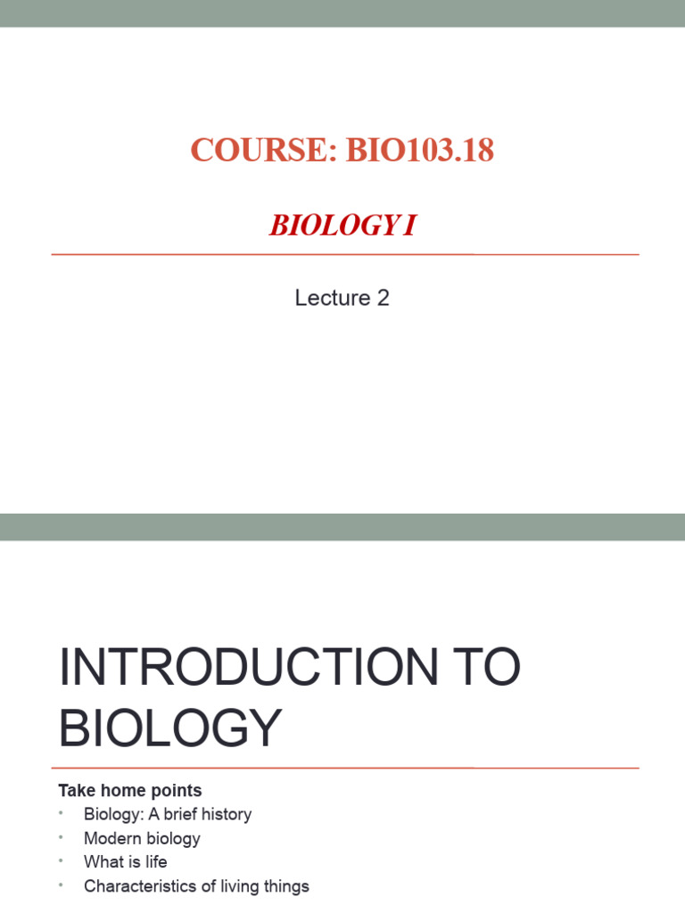 BIO Lecture - bio 101 - Main Topic 1: Introduction to Biology Biology ...