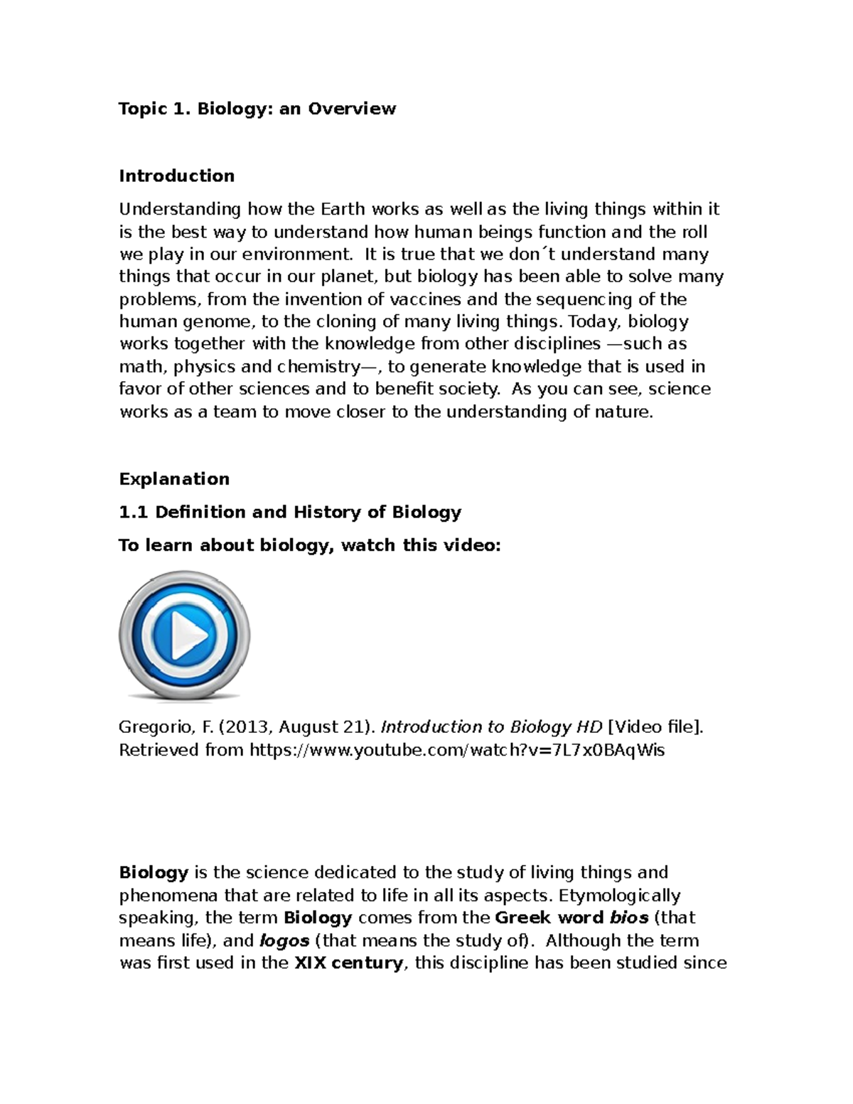 Life science topics - Topic 1. Biology: an Overview Introduction ...