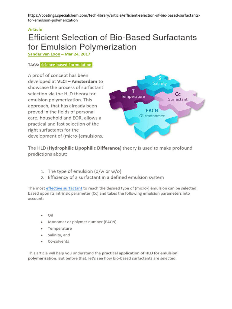 Efficient Selection of Bio Based Surfactants For Emulsion ...