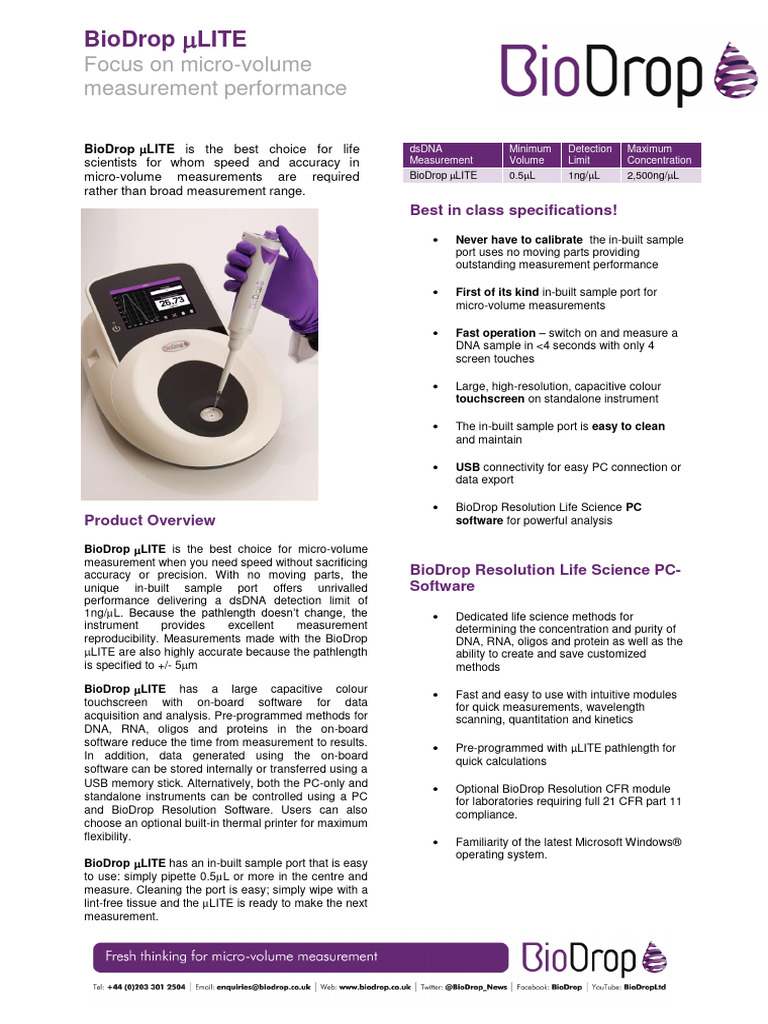 BioDrop uLITE 3 | PDF | Life Sciences | Biology