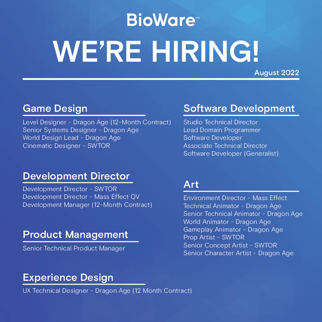 BioWare on Twitter: "Build your career at BioWare with open positions ...