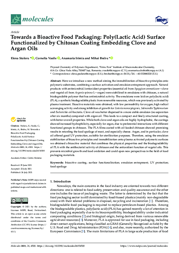 (PDF) Towards a Bioactive Food Packaging: Poly(Lactic Acid) Surface ...