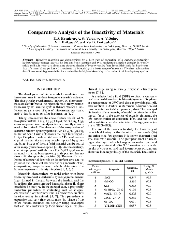 (PDF) Comparative analysis of the bioactivity of materials