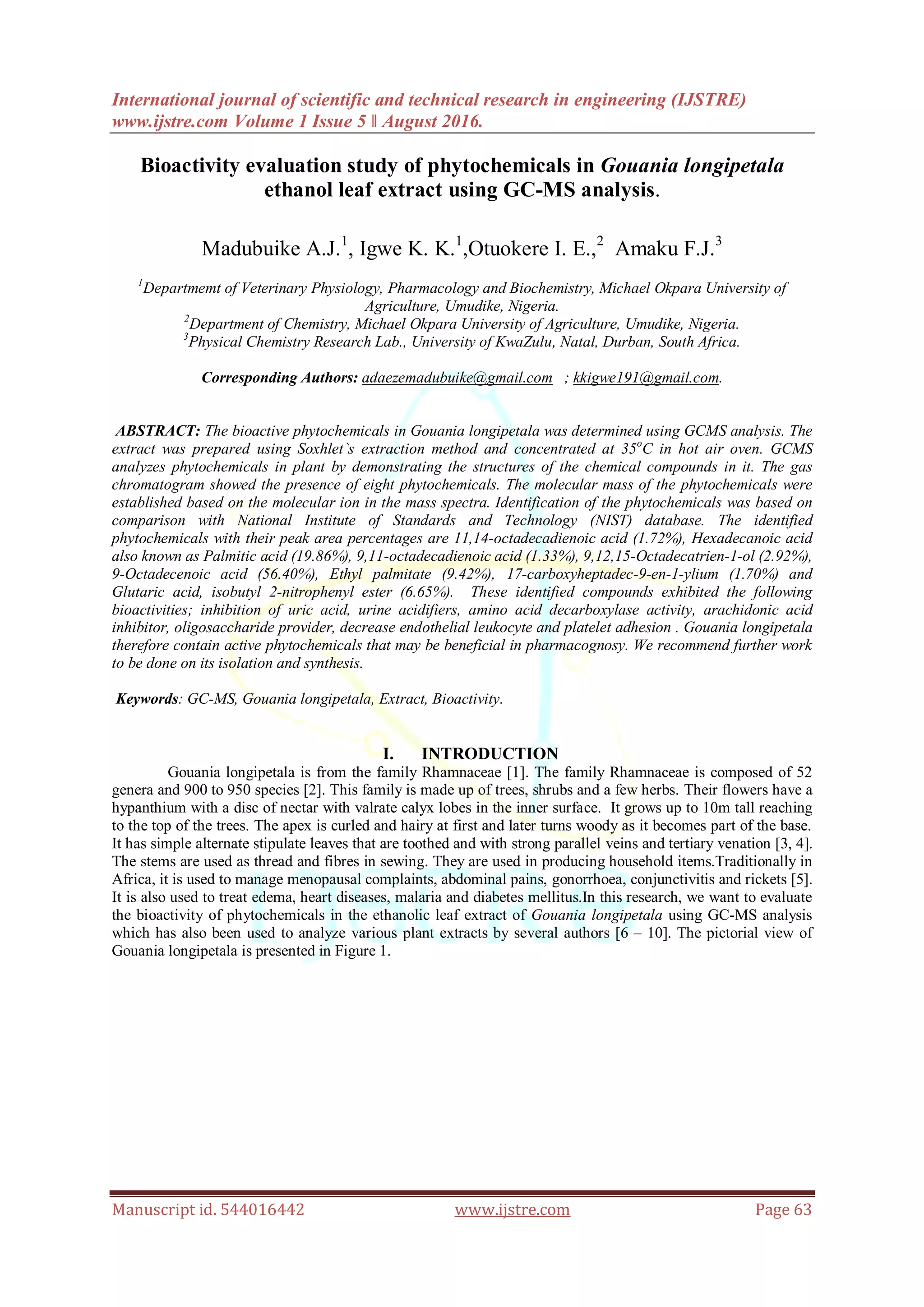Bioactivity evaluation study of phytochemicals in Gouania longipetala ...