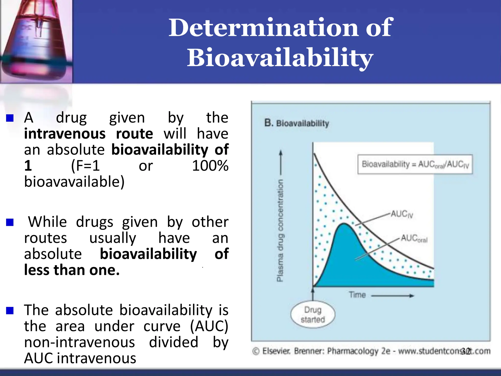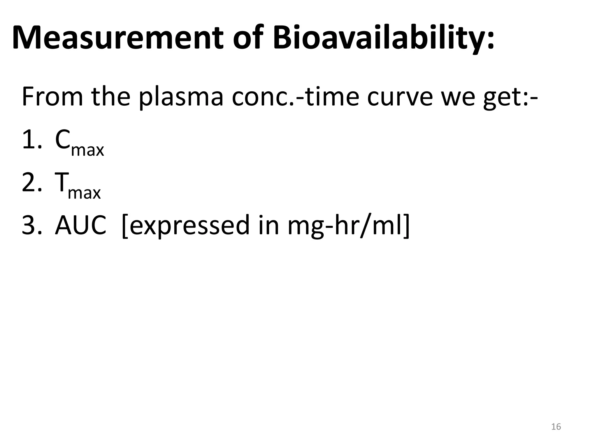 1. Absolute Bioavailability: When the drug is administered through the ...
