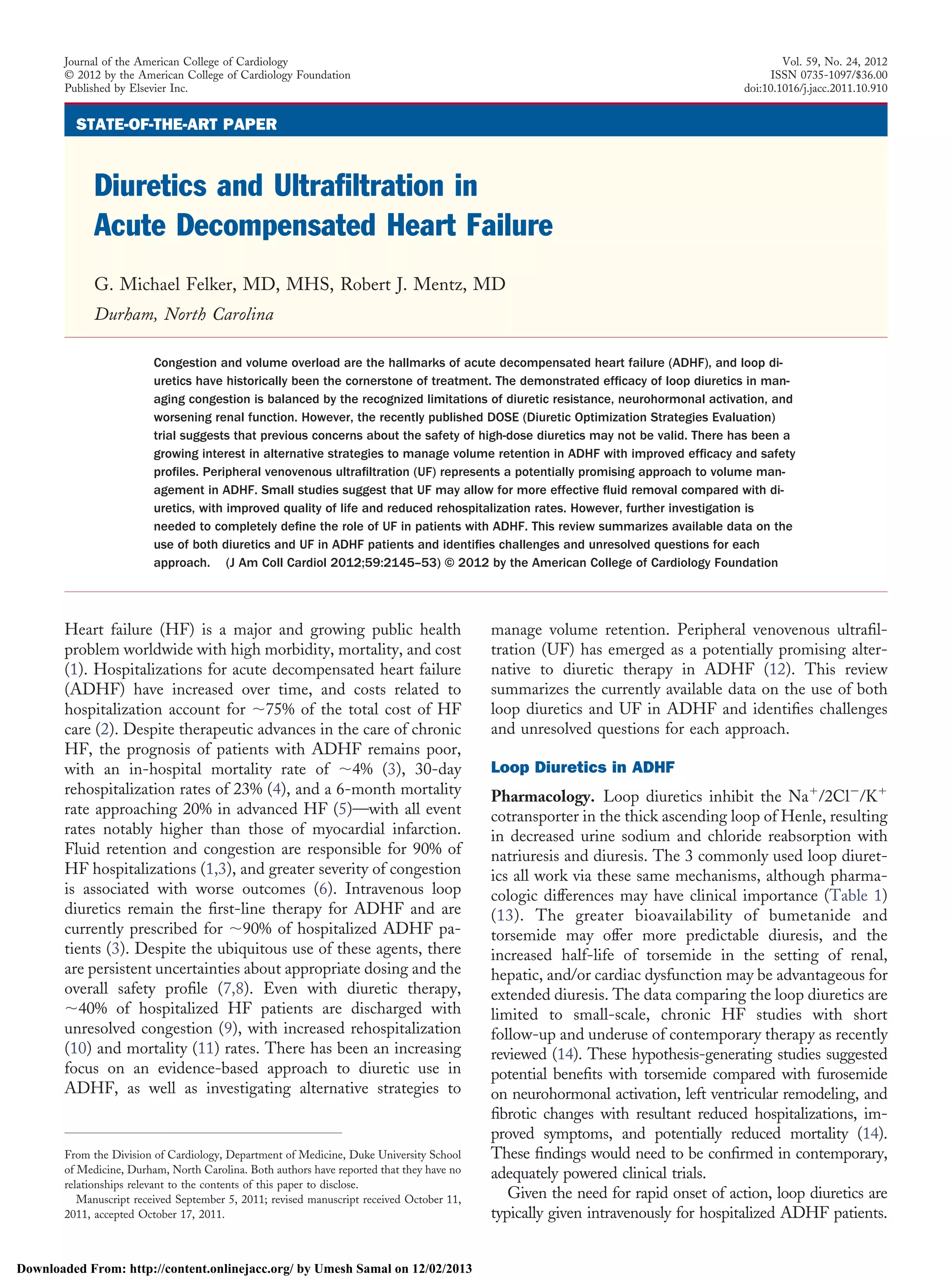 on Diuretic Therapy from Clinical and Pharmacologic Perspectives ...