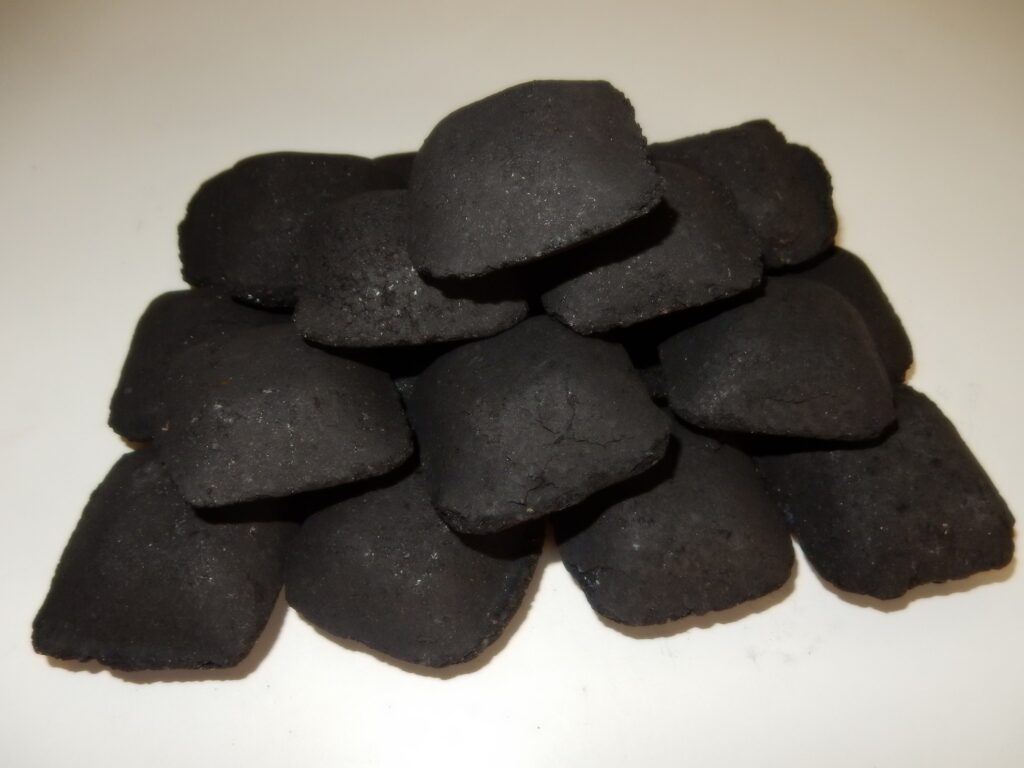 Una persona sosteniendo pellets de biocarbón un combustible de carbón ...