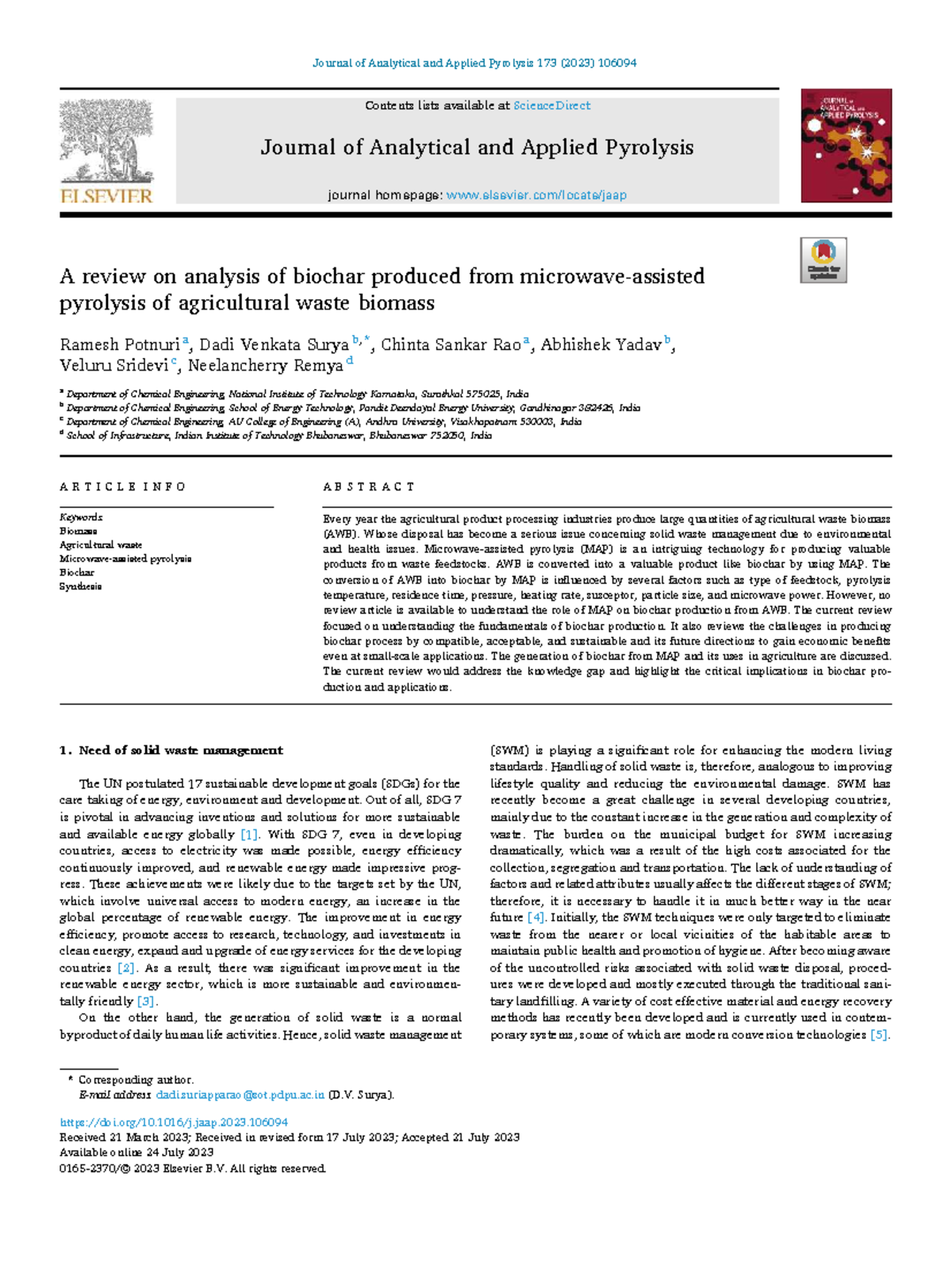 A Review on Biochar Production from Agricultural Waste via MAP (CHEM ...
