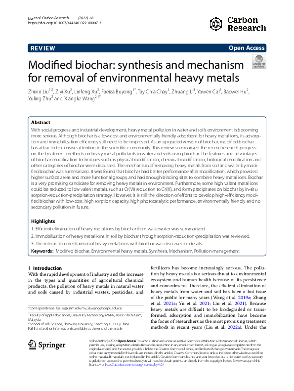 (PDF) Modified biochar: synthesis and mechanism for removal of ...