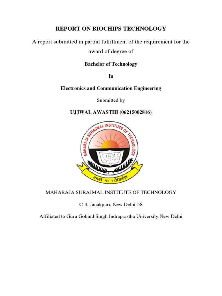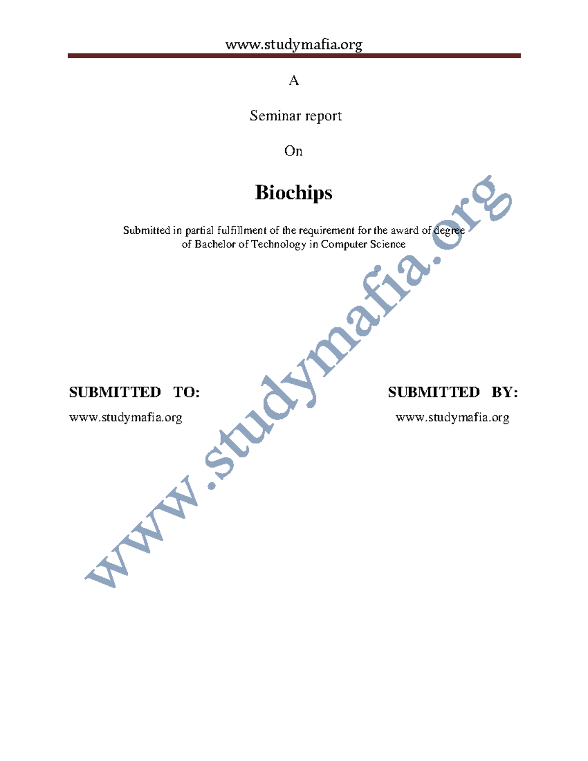 Biochips Report.pdf - SEMINAR REPORT ON "Biochip Technology" BY ...