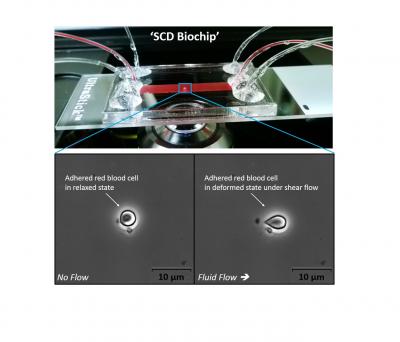 Sickle cell disease biochip (SCD biochip) probes red blood cell (RBC ...