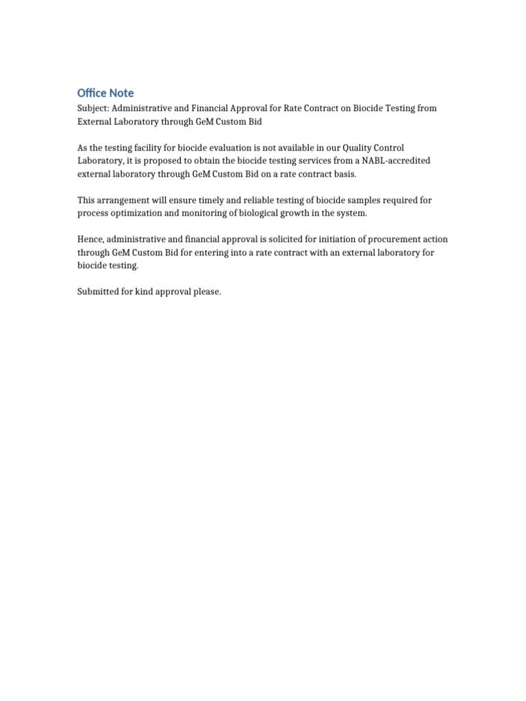 Office Note Biocide Testing GeM | PDF