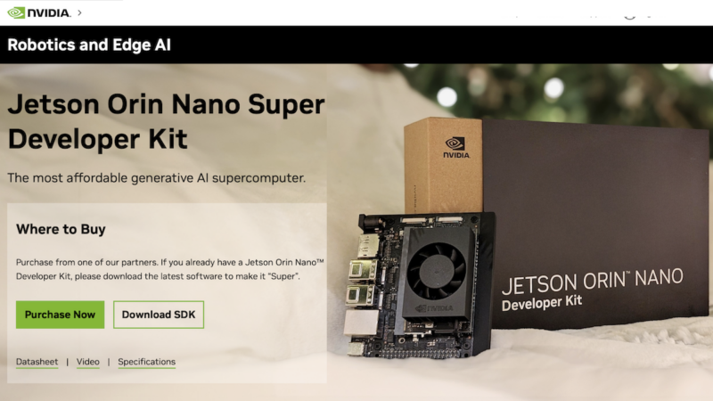 NVIDIA Jetson Orin Nano™ Super Developer Kit. 67 TOPS. 25watts. $249 ...
