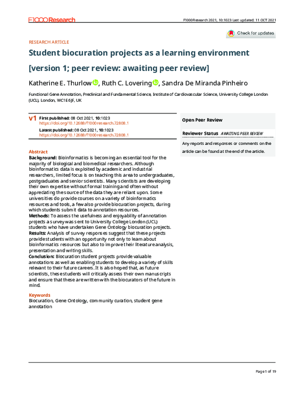 Student biocuration projects as a learning... | F1000Research