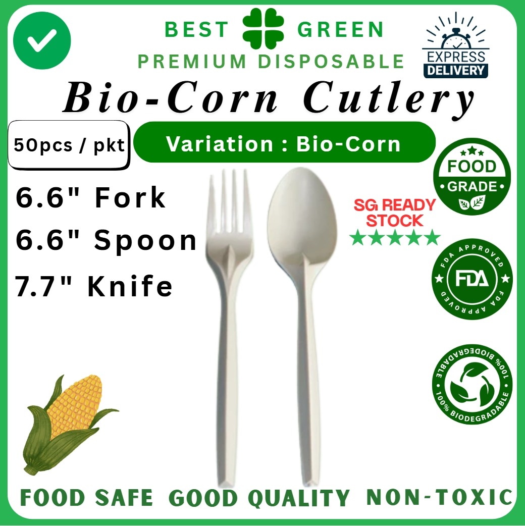 Biodegradable Bio-Corn Cutlery [Spoon / Fork / Knife], Furniture & Home ...