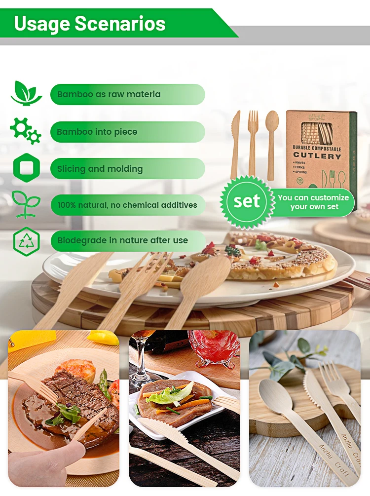 Eco Friendly Bamboo Cutlery Biodegradable Disposable Wooden Cutlery ...