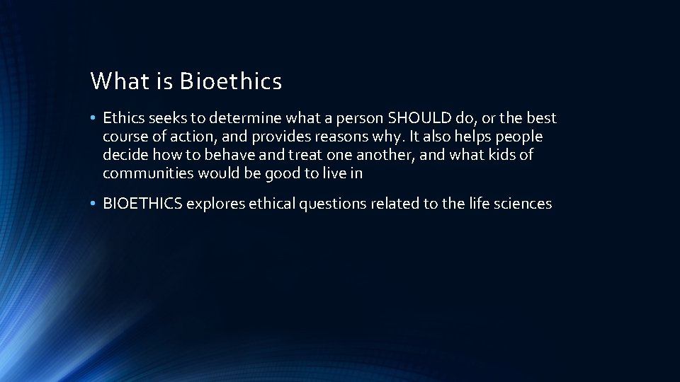 Bioethics What is Bioethics Ethics seeks to determine