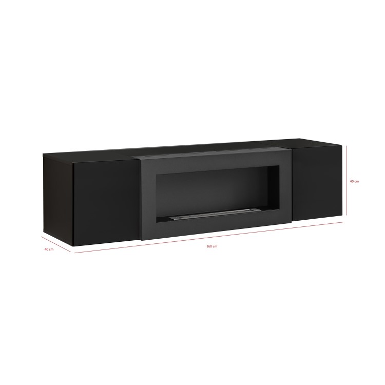 Floating Bioethanol Fireplace in Black High Gloss - Neo - Furniture123