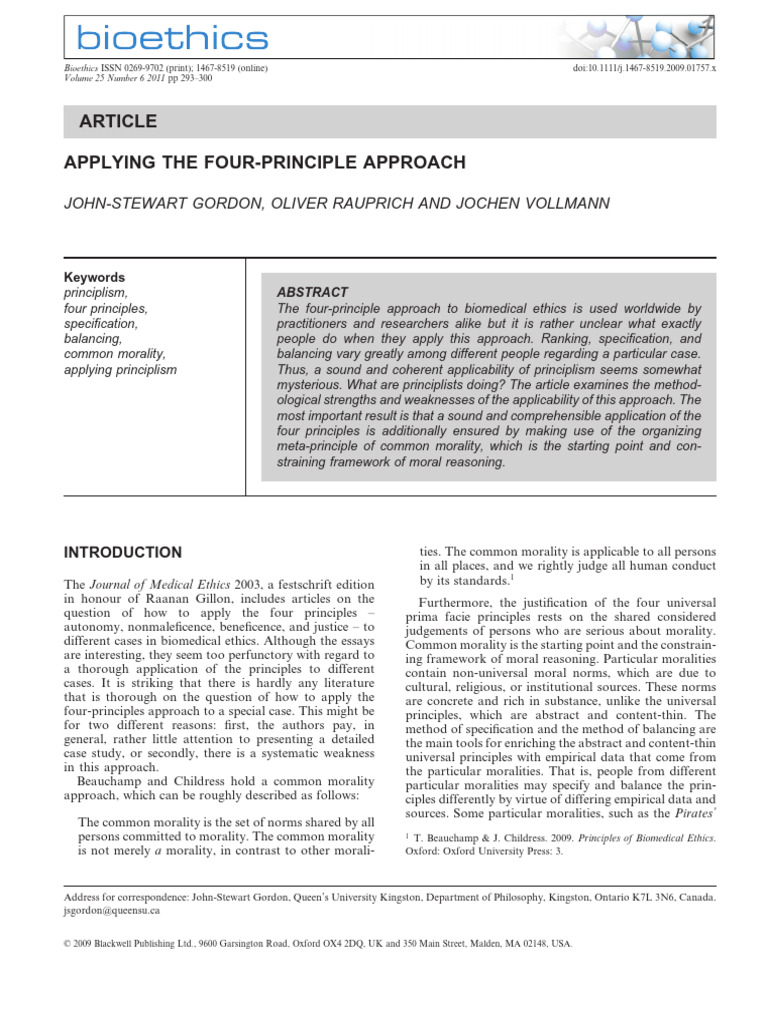 Applying The Four-Principle Approach - Bioethics | PDF | Autonomy ...
