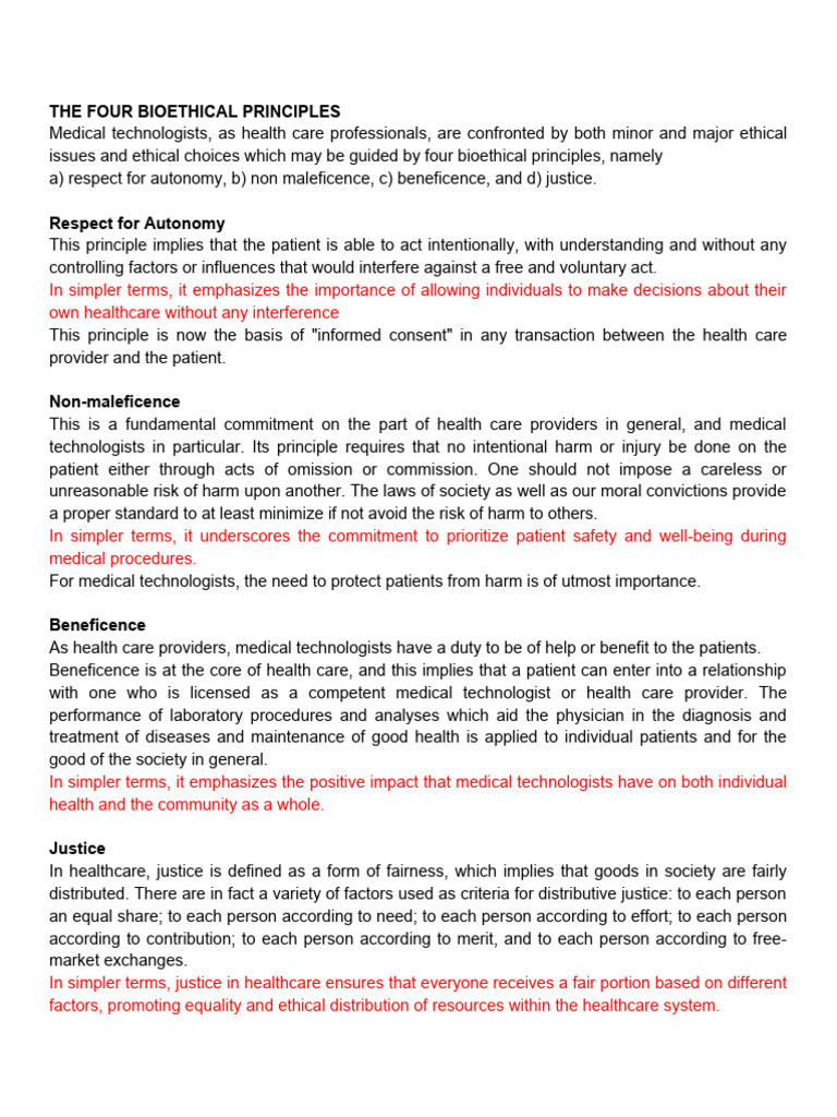 Four Basic Principles of Biomedical Ethics | PDF