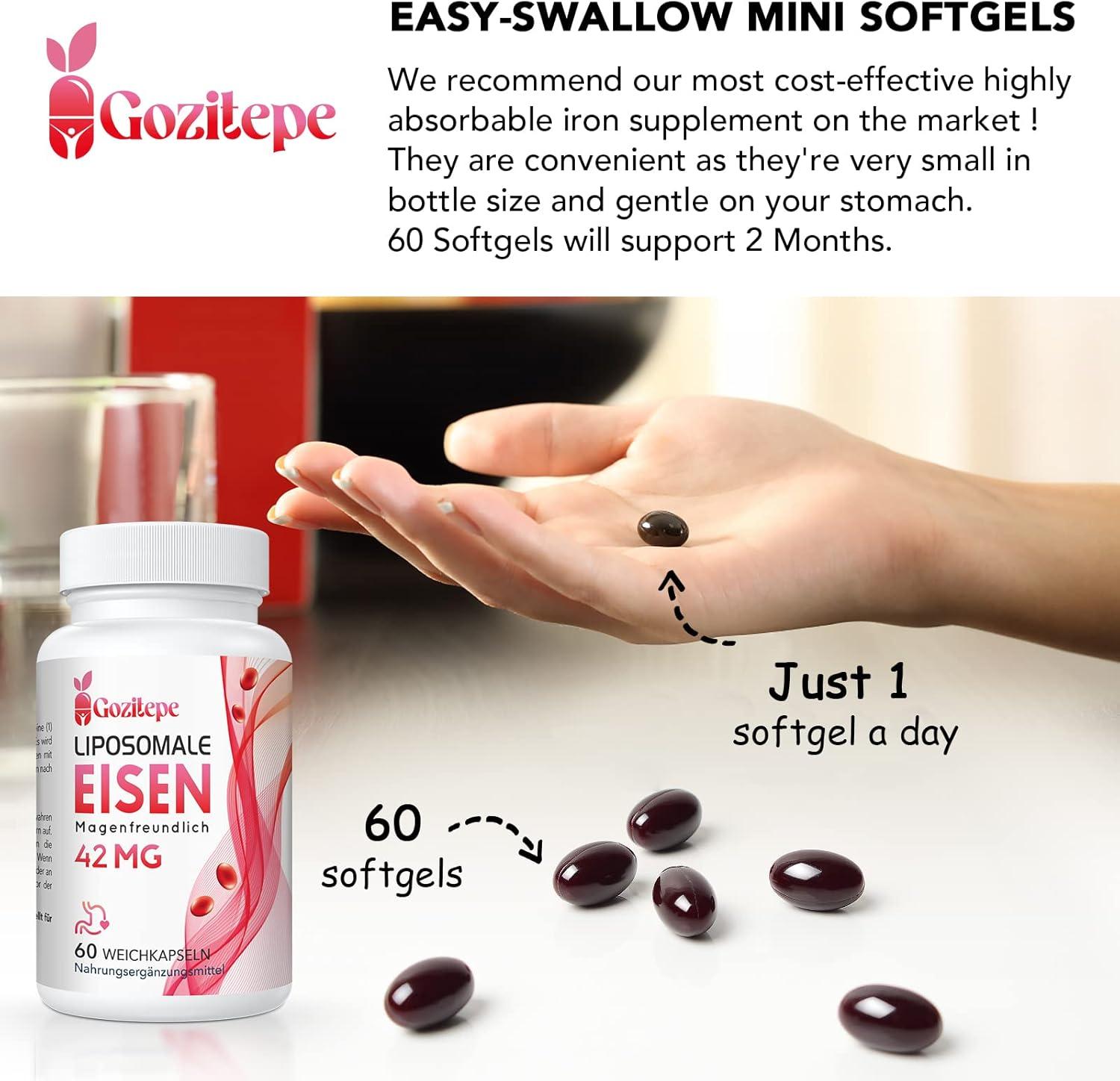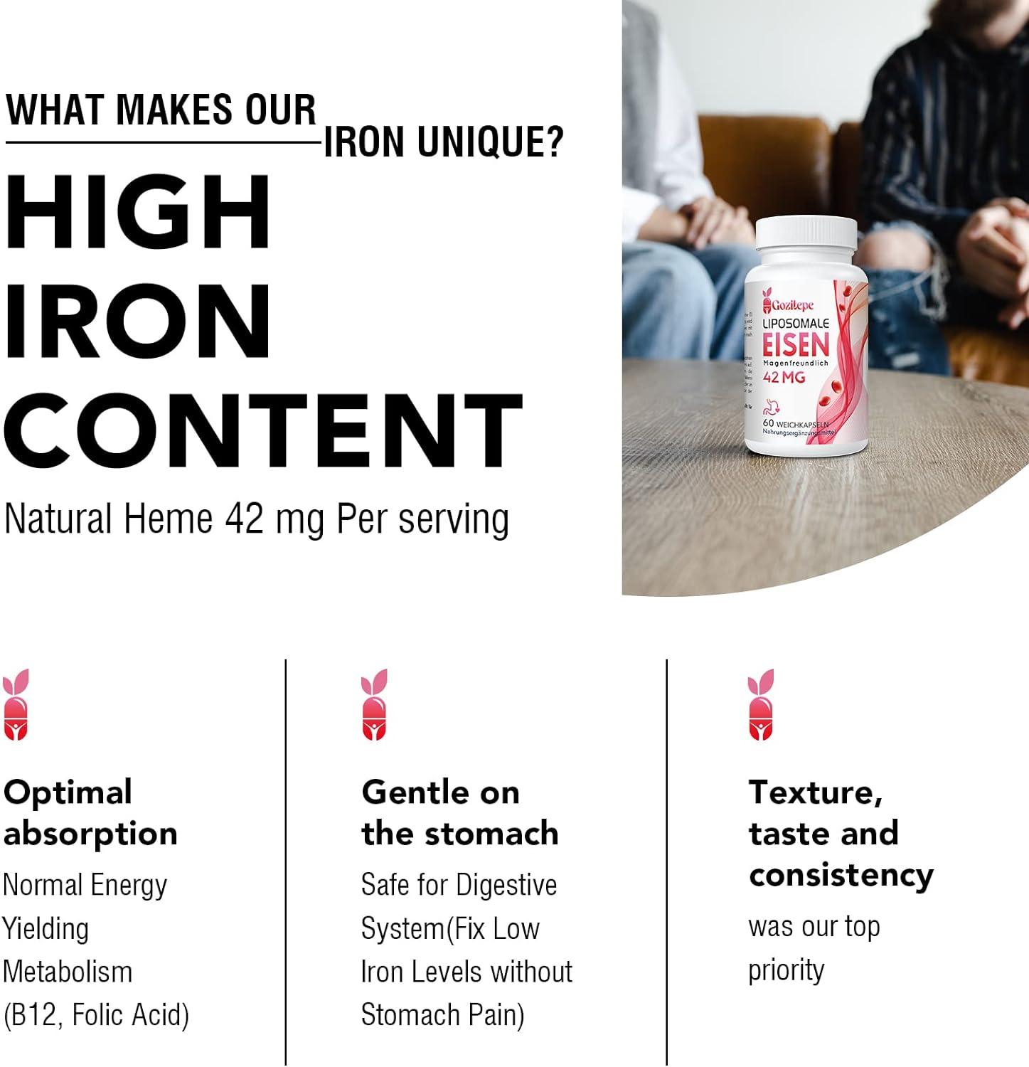 Liposomal Iron 42 mg with Folic Acid & Vitamin B12 - 60 Capsules for ...