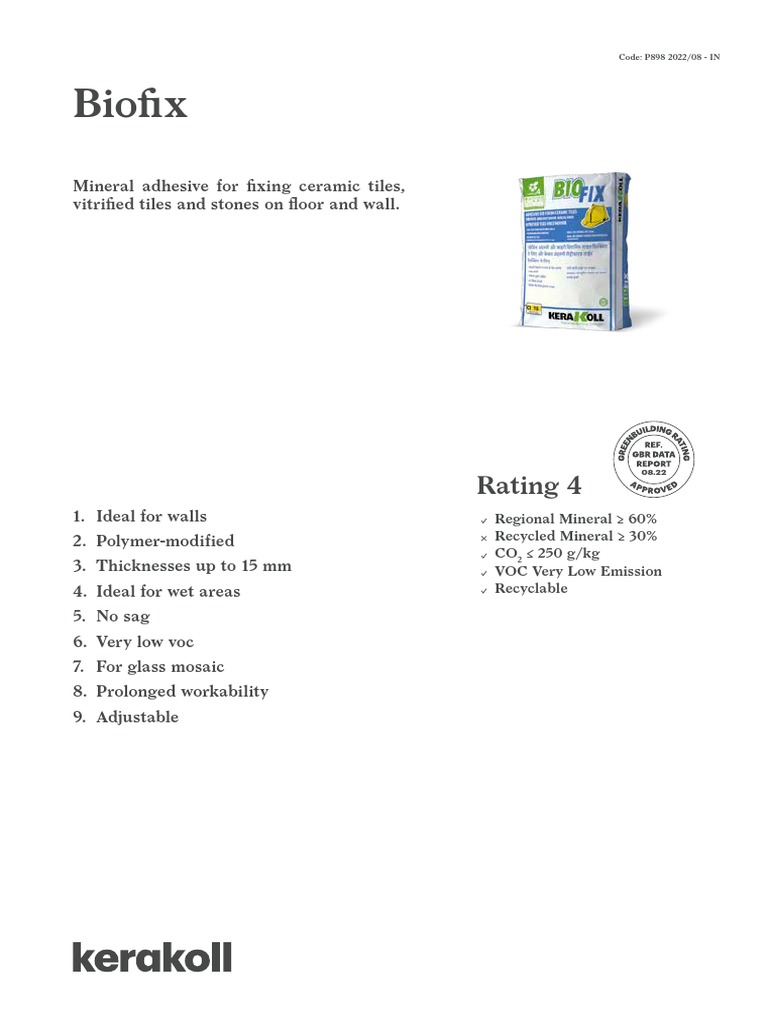 Kerakoll Biofix Adhesive | PDF | Concrete | Volatile Organic Compound