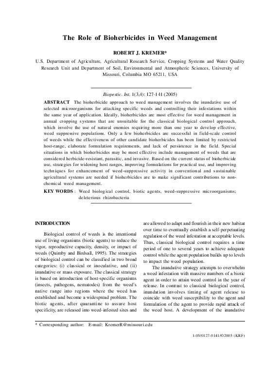(PDF) The Role of Bioherbicides in Weed Management