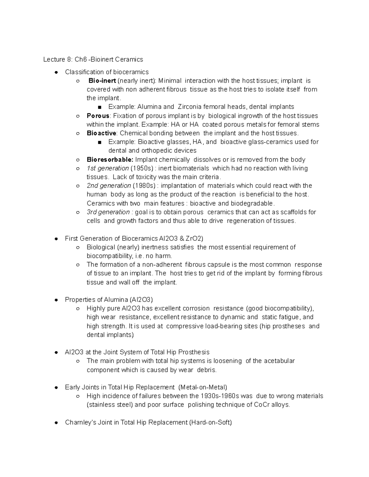 MS4610-Lecture 6 Bioinert Ceramics.pdf - Topic II - Advanced Medical ...
