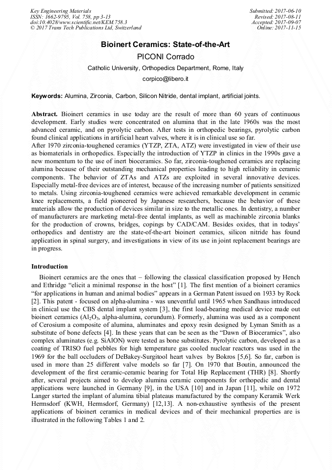 (PDF) Bioinert Ceramics for Biomedical Applications