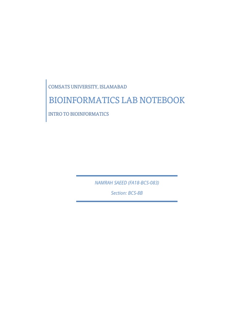 Bioinformatics Lab Notebook: Comsats University, Islamabad | PDF ...