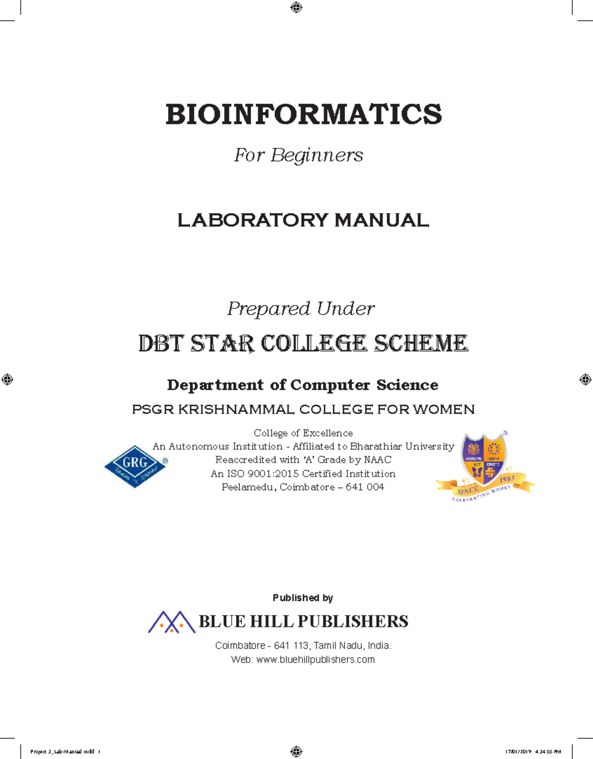 Laboratory Manual Bioinformatics - Lincoln Publication