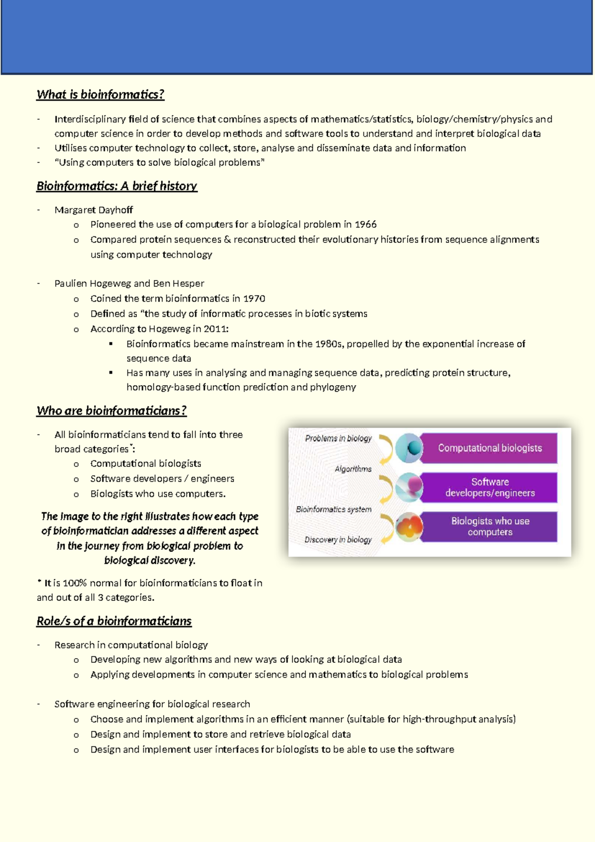 Introduction to Bioinformatics Study Notes Bundle 50+ Pages ...