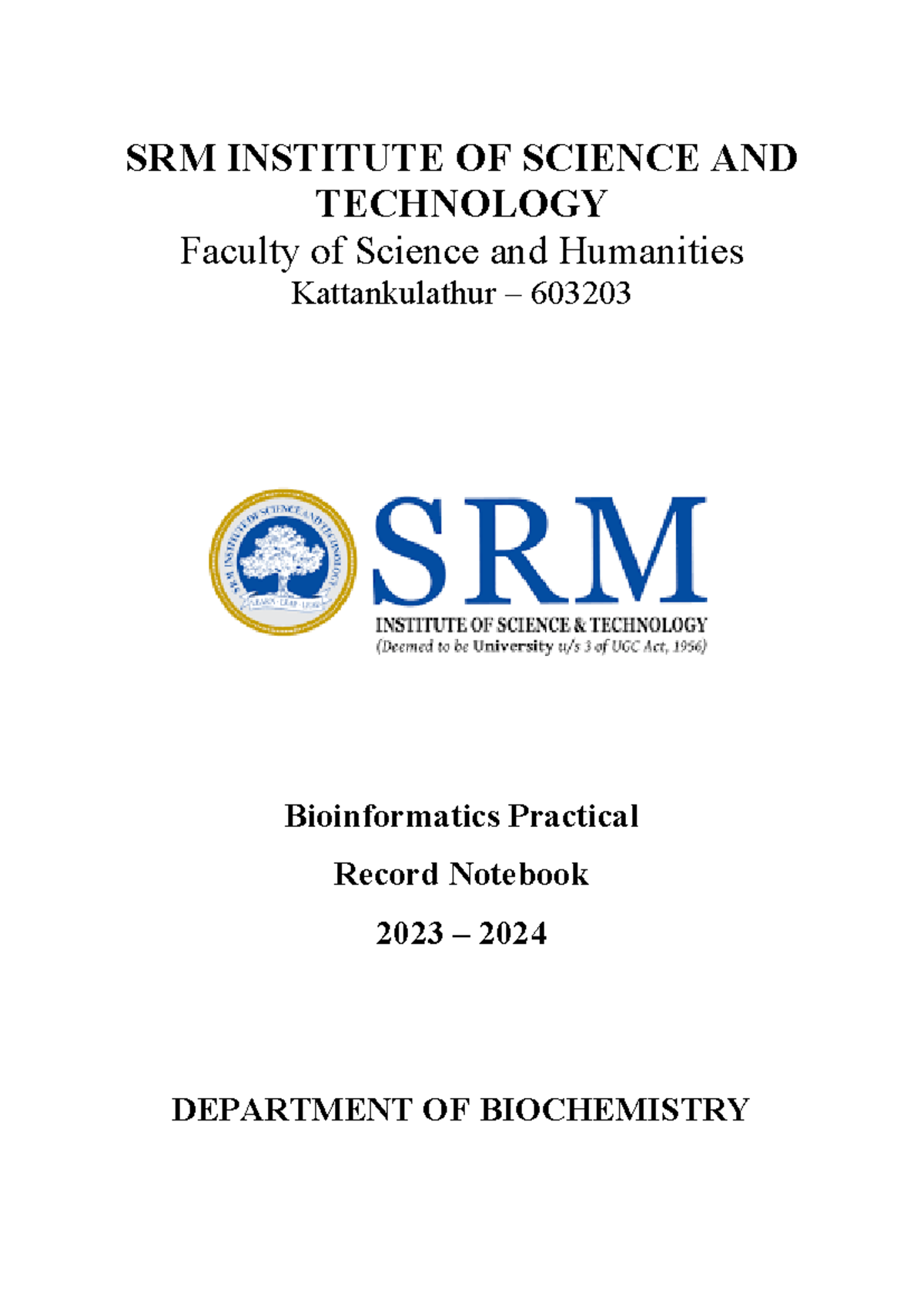 Bioinformatics Practical Record Notebook - M.Biochemistry 2023-2024 ...