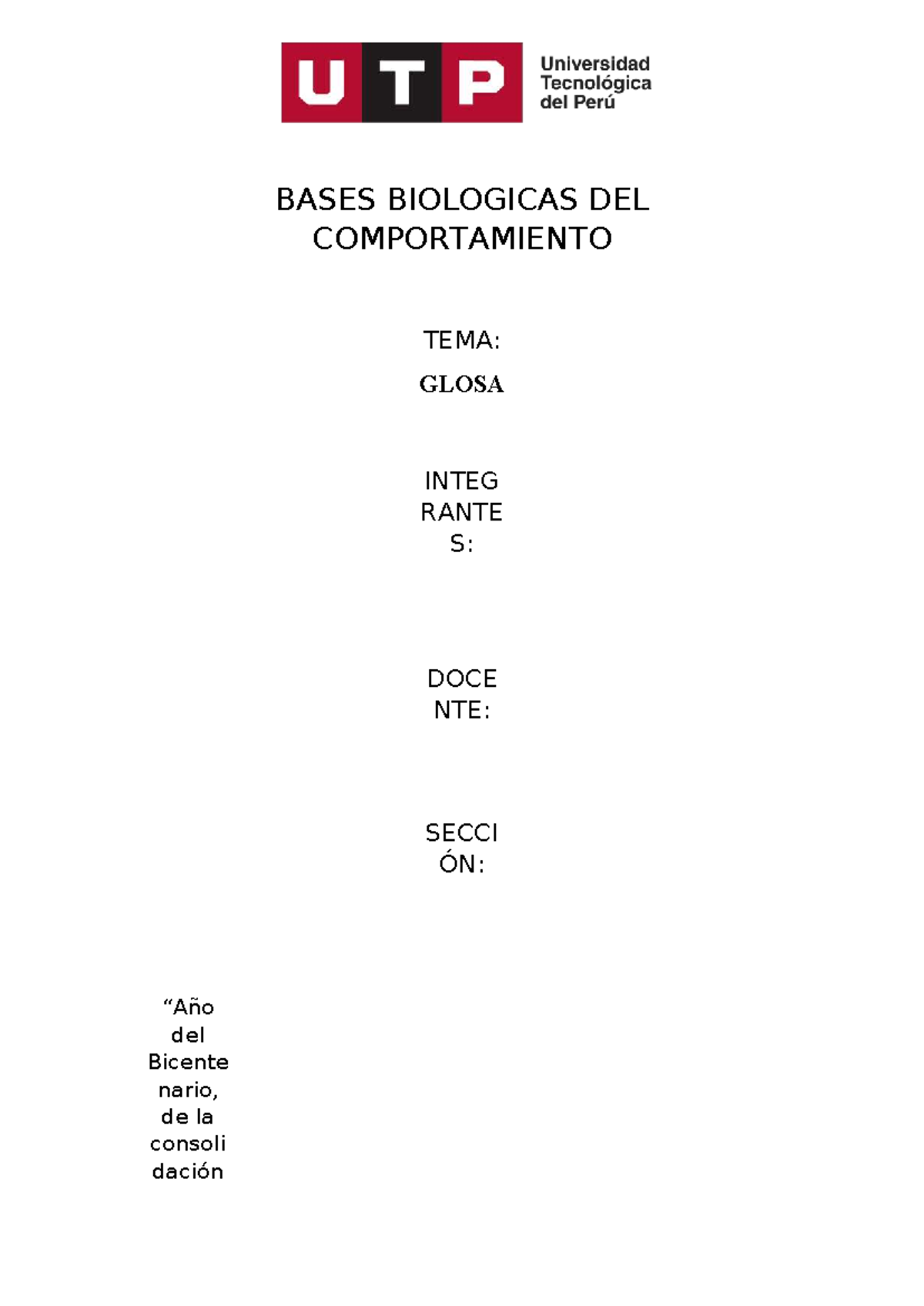 BASES BIOLOGICAS DEL COMPORTAMIENTO: GLOSARIO INTEGRANTE - Studocu