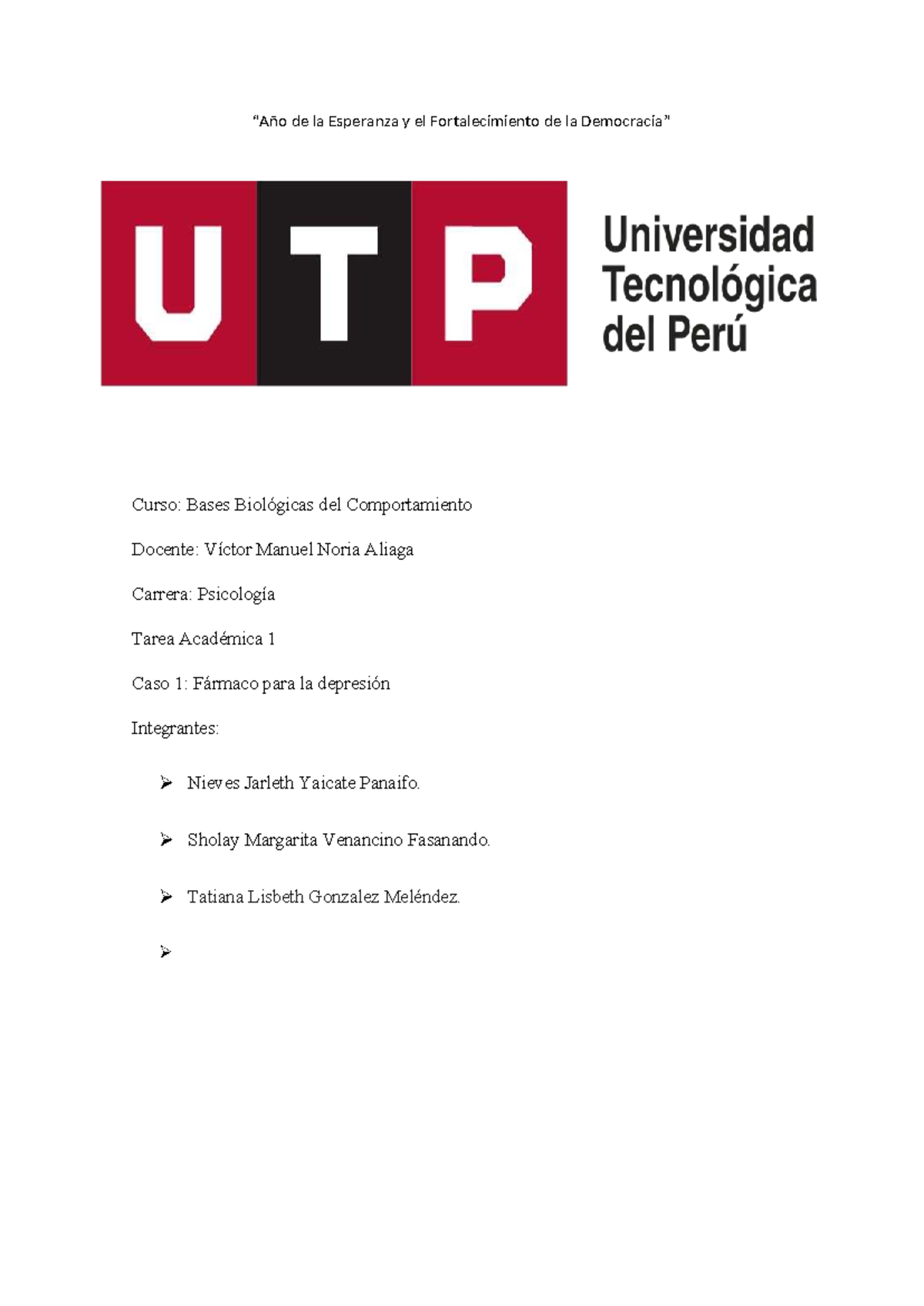 Tarea Académica 1: Fármaco para la Depresión - Bases Biológicas del ...