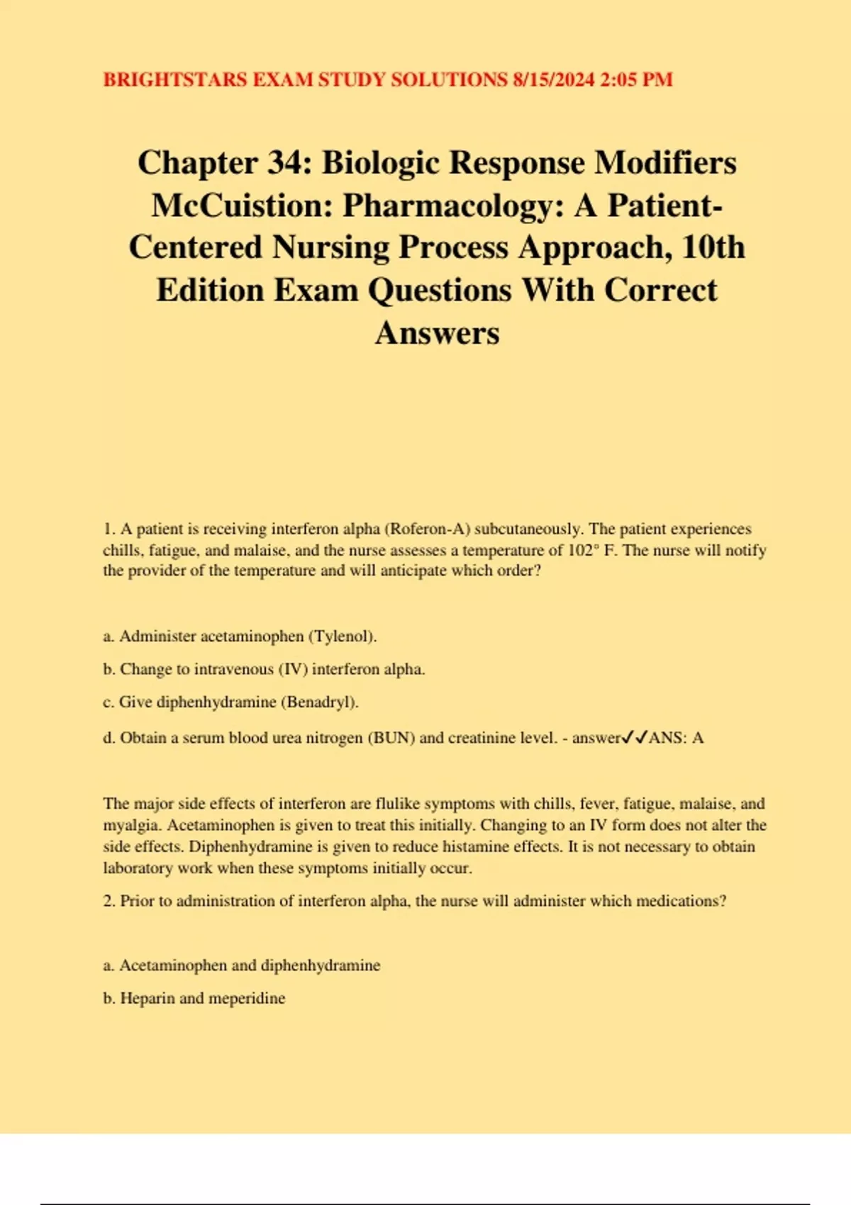 Chapter 34.docx - Chapter 34: Biologic response modifiers Interferons o ...