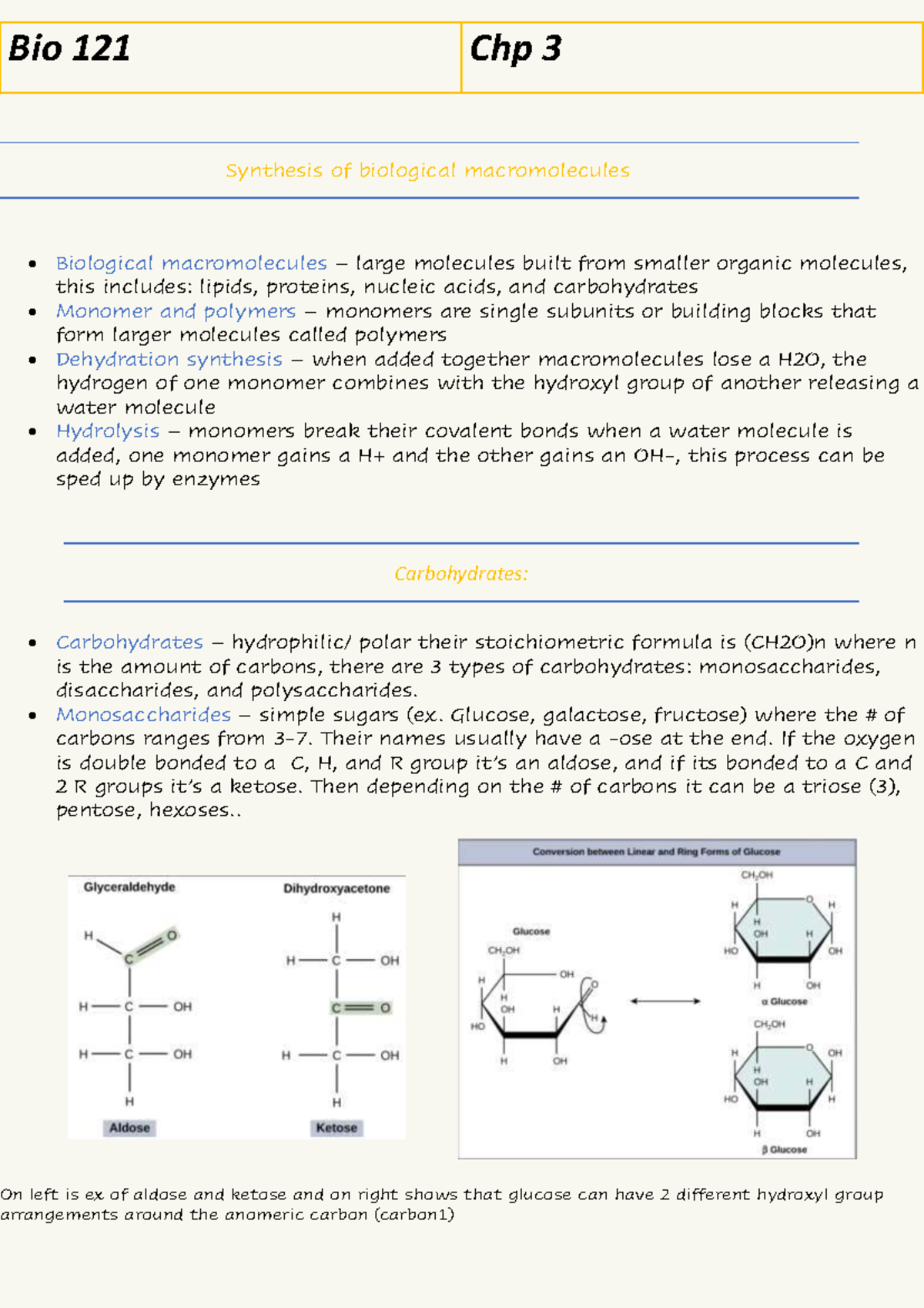 Bio 121 Chp 3 - Summary of Biological Macromolecules - Studocu