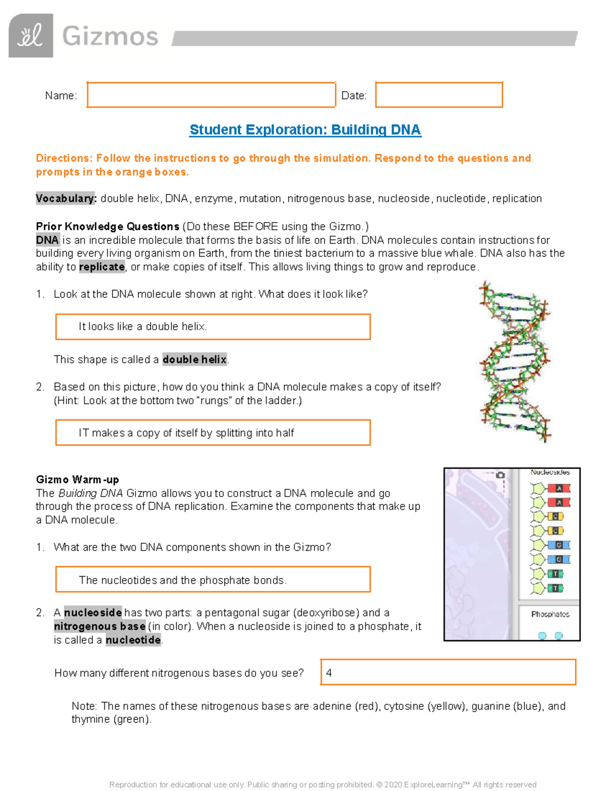 Gizmo Exploration: Building DNA Simulation Guide - Studocu