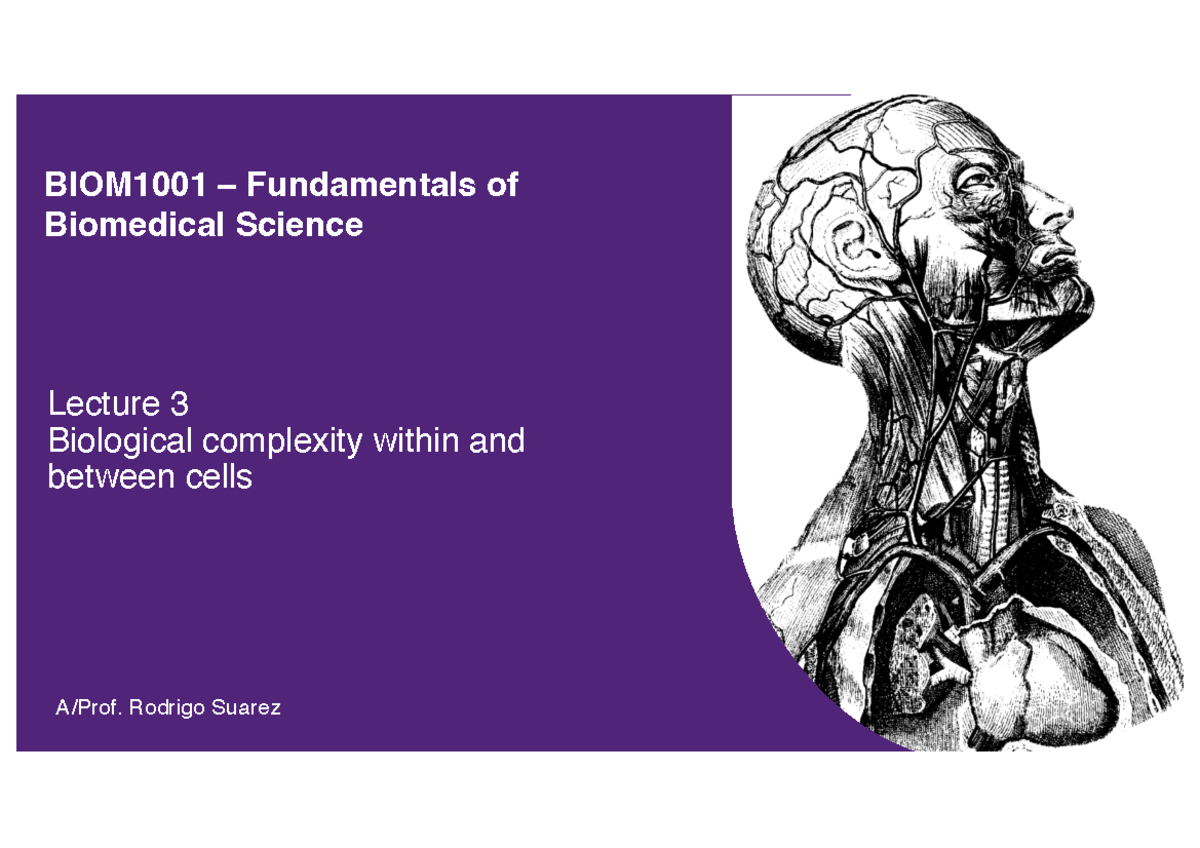 BIOM1001 Lecture 3-4: Biological Complexity & Cellular Processes - Studocu