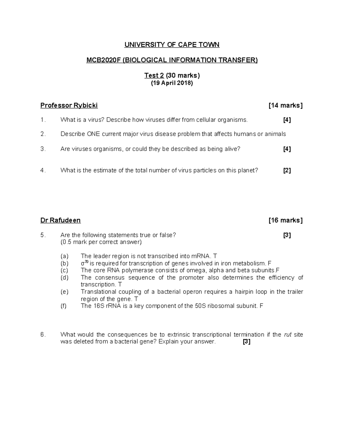 MCB2020F Test 2 - Biological Info Transfer (April 2018) - Studocu
